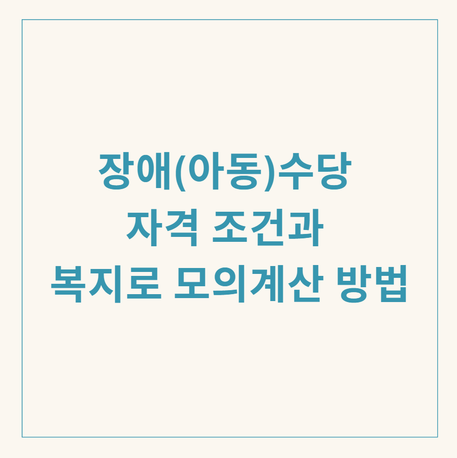 장애아동이 있는 가구는 매월 장애(아동)수당을 받을 수 있습니다. 복지로 모의계산기를 통해 2025년 수급 자격을 간단히 확인해보세요.